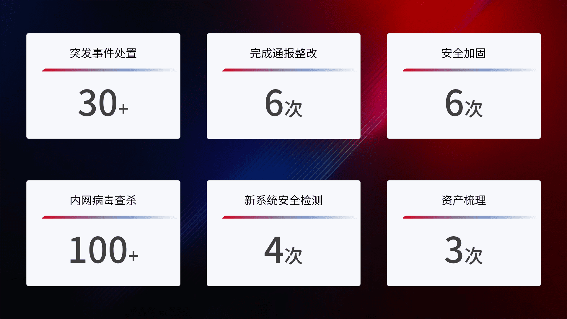 网络安全加固与风险管理:通过技术加固手段,,,,如加强区域隔离,,,缩减攻击内网横向移动的范围;优化现有网络安全管理制度,,,降低网络威胁暴露面,,,,减少被黑客攻击的可能性。。